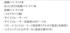 販売元 (株)ラングスジャパン パッケージサイズ(W×H×D) 400×380×70mm 重量 1070g 対象年齢 6歳以上 セット内容 ・曲線パイプ×8本 ・出入口付き直線パイプ×1本 ・直線パイプ×3本 ・コネクタ×12個 ・ザイプスレーサー×1 ・ザイプスレーサー充電用USBケーブル ・リモートコントローラー(別途単3アルカリ電池2本使用) ・コズミックストロボボール(電池交換不可) 商品コメント 重力にさからうように走る、ザイプス! 縦、横、斜め、下から上へ!?コースの組み立て無限大 重力に逆らうよう組み立てたり最大に加速するように組み立てたり クレイジーなスピードでザイプスレーサーが前後に駆け抜ける! 組み立て方は自由自在!ザイプス スピードパイプ 重力にさからうように走る、ザイプス! 縦、横、斜め、下から上へ!?コースの組み立て無限大 重力に逆らうよう組み立てたり最大に加速するように組み立てたり クレイジーなスピードでザイプスレーサーが前後に駆け抜ける! 組み立て方は自由自在!